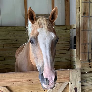 Lloyd joined the herd in 2022. He arrived severely underweight and malnourished, but after a few months of rehabilitation, he began his career as a lesson horse in my program. He taught all kinds of kids and adults how to groom, tack, and ride.